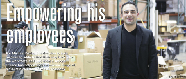 Today, Michael Dadashi is the CEO of MHD Enterprises, a multi-million dollar e-waste recycling company based in Austin. But five years ago he was a heroin addict who couldn’t keep a job and nearly lost his life to an overdose–and that was his turning point. “I’ve been given a second chance over a hundred times,” Dadashi says. “People have really believed in me. I’ve let them down. They believed in me again, and I let them down–but it paid off because in 2009 I finally got sober.”