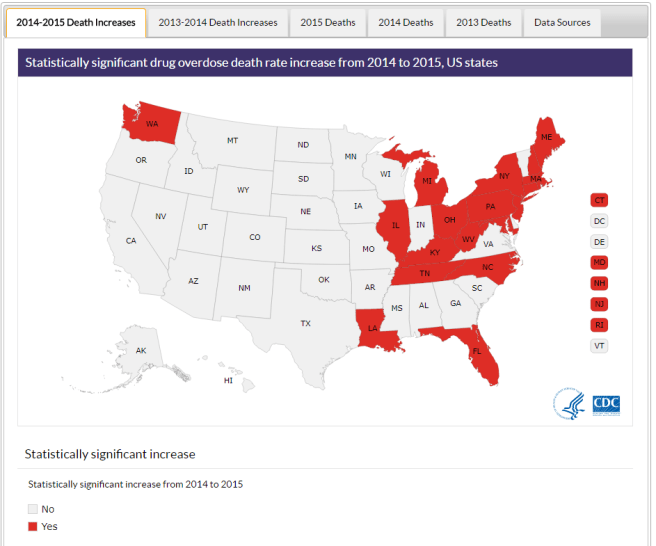 This caught my attention because New England has higher rates of overdose, as depicted in the CDC graphics below.