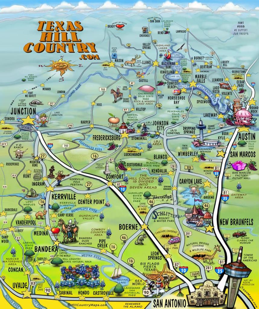 To the east of Kerrville lies farm and ranch land extending to San Antonio’s outskirts along IH-10. The land smooths out eastward. To the west and southwest, limestone hills, valleys of amber wild grass, cedar, rock, and clear water streams. The terrain is dotted with enormous ranches, hunting leases, and exotic game farms. You are just as likely to see a Zebra or a Giraffe as you are to encounter a rattlesnake or wild hog. To the south begins the gradual declination toward the Mexican Frontier and the Chihuahuan desert. North will take you into the outskirts of the Capitol city.