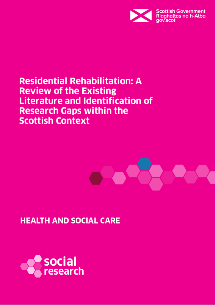 ‘Follow the evidence’ in this context is a refrain that implies that there is no evidence that rehab works to help people achieve their goals and improve their quality of life. That is simply not true. Last month saw the publication of a literature review on residential rehab by Scottish Government researchers. It’s a thorough piece of work. This summary of the research evidence provides verification that “that residential rehabilitation is associated with improvements across a variety of outcomes relating to substance use, health and quality of life”.