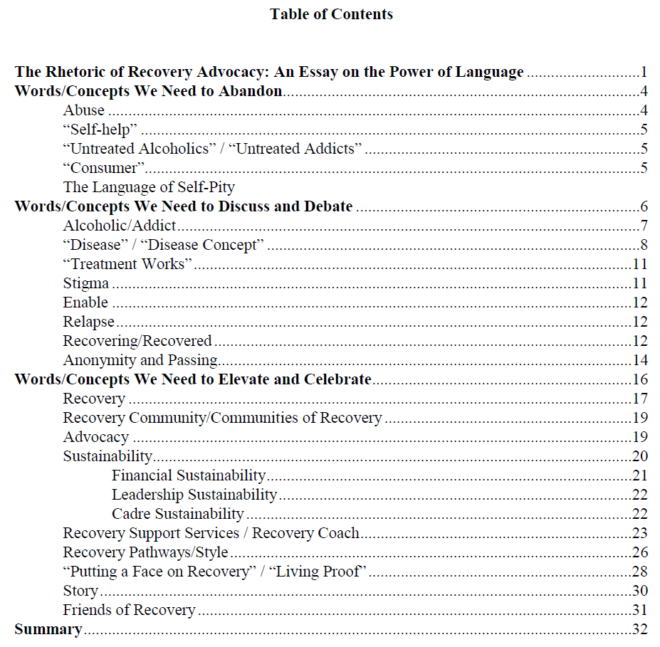 What I hope to do in this brief essay is to offer some historical and personal reflections on the words that have been the central tools in conceptualizing both alcohol and other drug-related problems and their resolution. My goal is to stimulate discussion about the layers of potential meaning that fill much of this language. For the New Recovery Movement to be “new,” it will need a fresh and dynamic language to free it from the echoes of the past. In this essay, I will call for the abandonment of some long-used words, the careful re-examination of other words, and the elevation of yet other words to the center of the New Recovery Movement.