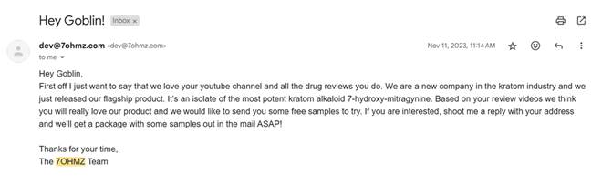 One of the owners of 7OHMZ, a leading 7OH brand, reached out to me and sent a text his Lawyer would probably kill him for.