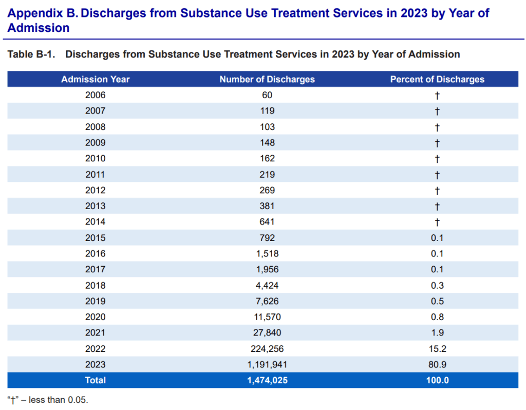 I’m familiar with the TEDS, but I don’t recall ever seeing this table of discharges by year of admission.